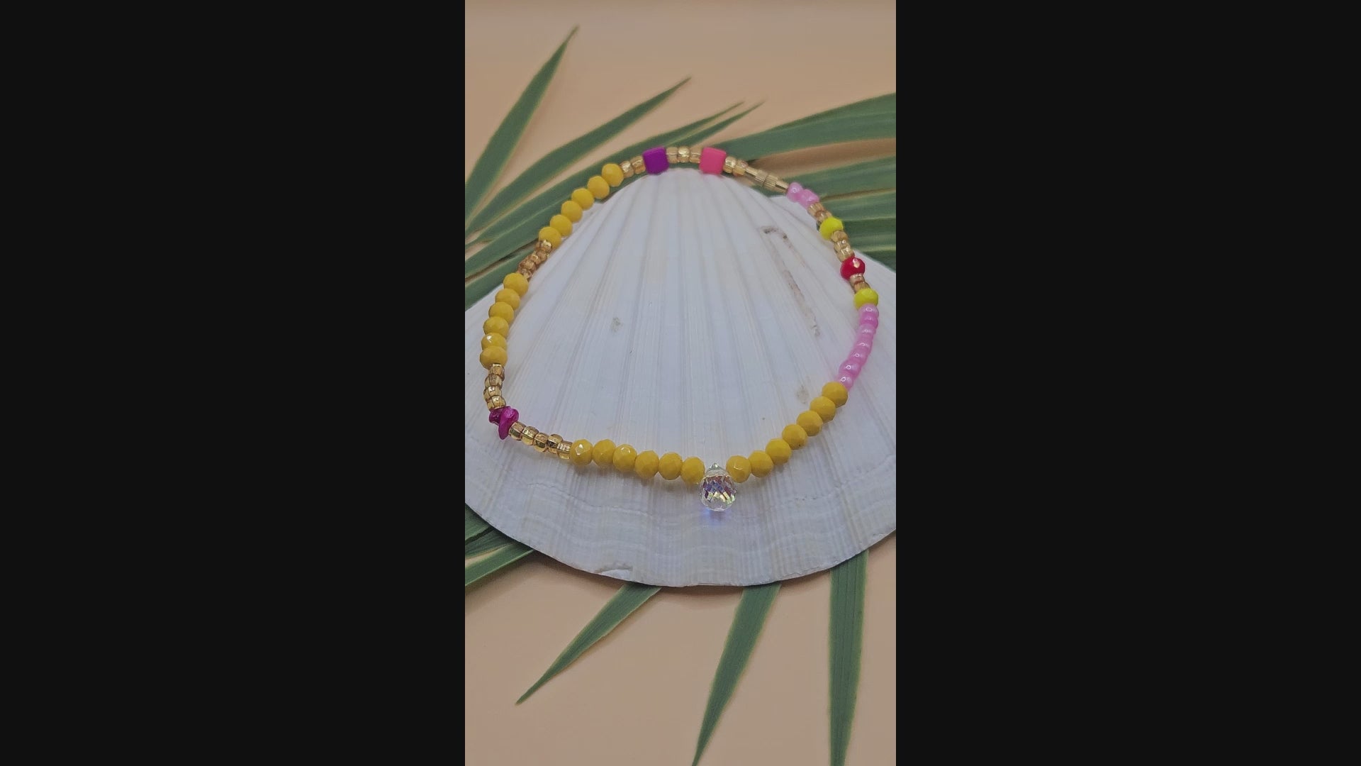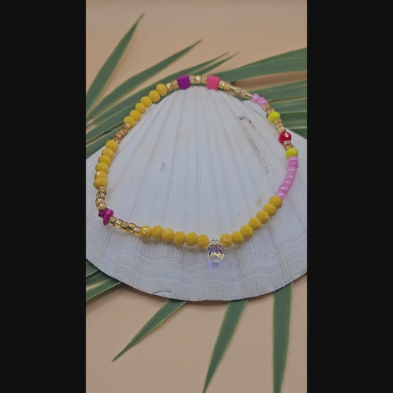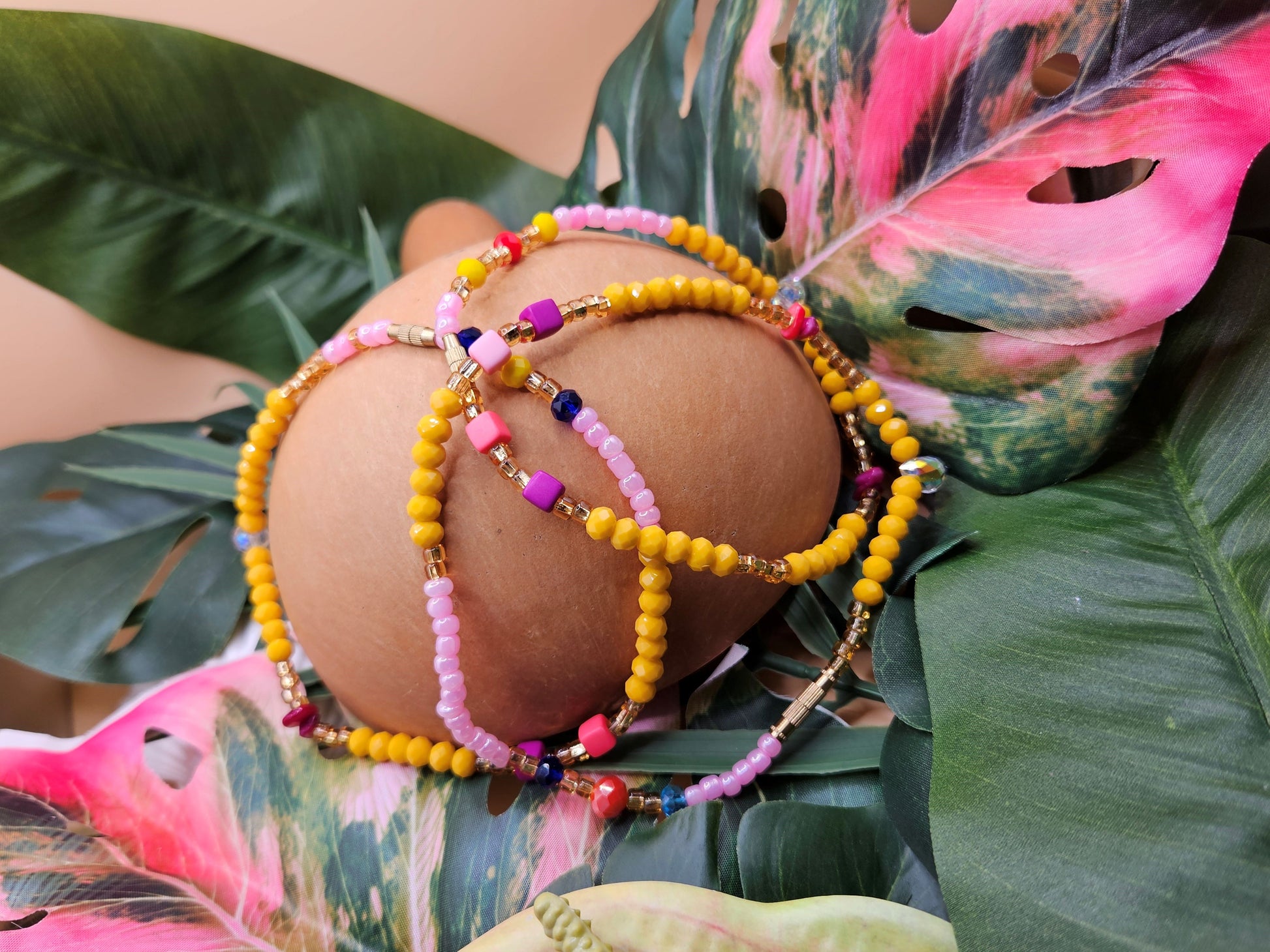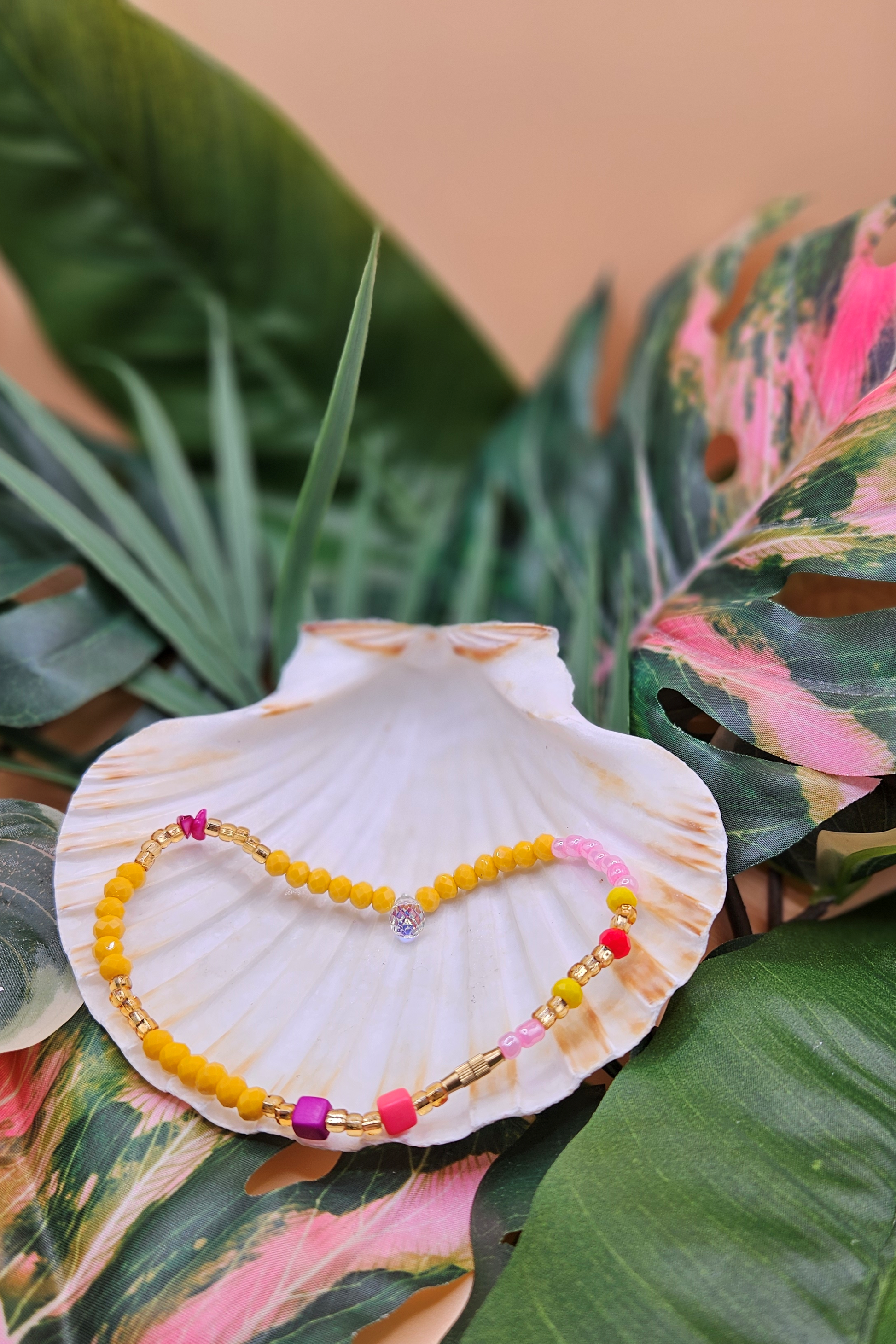 Brighten your step with our authentic West African anklet, handcrafted in Ghana with glass beads and crystal gems in soft pink and vibrant yellow. Joyful, radiant, and made with love.