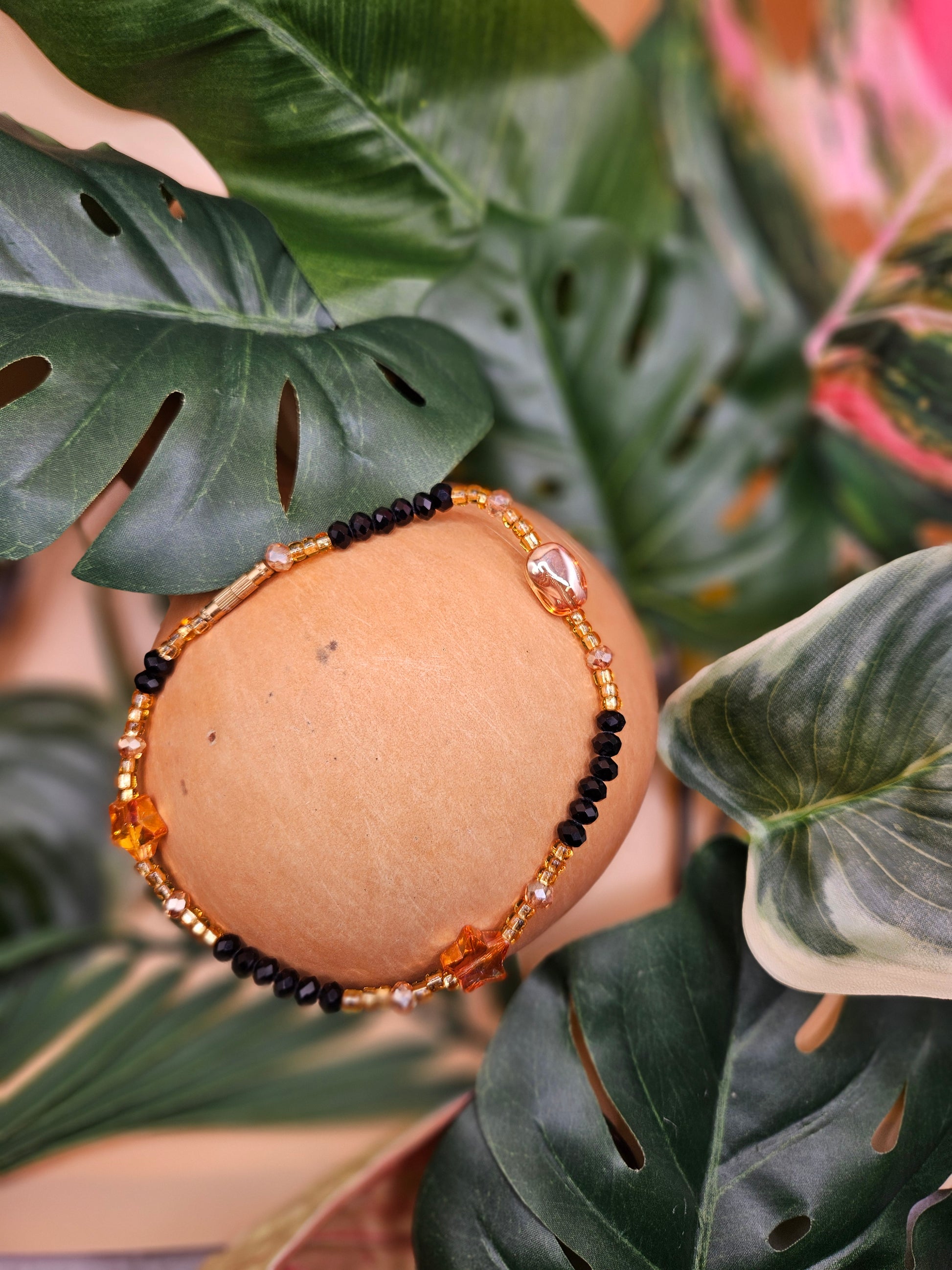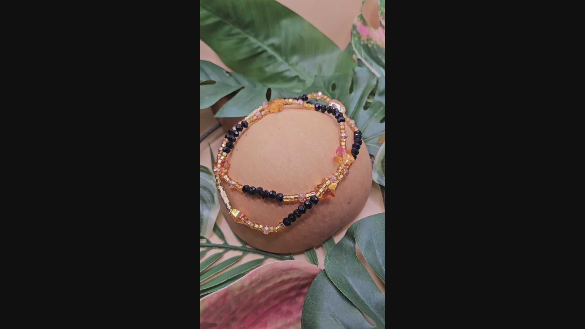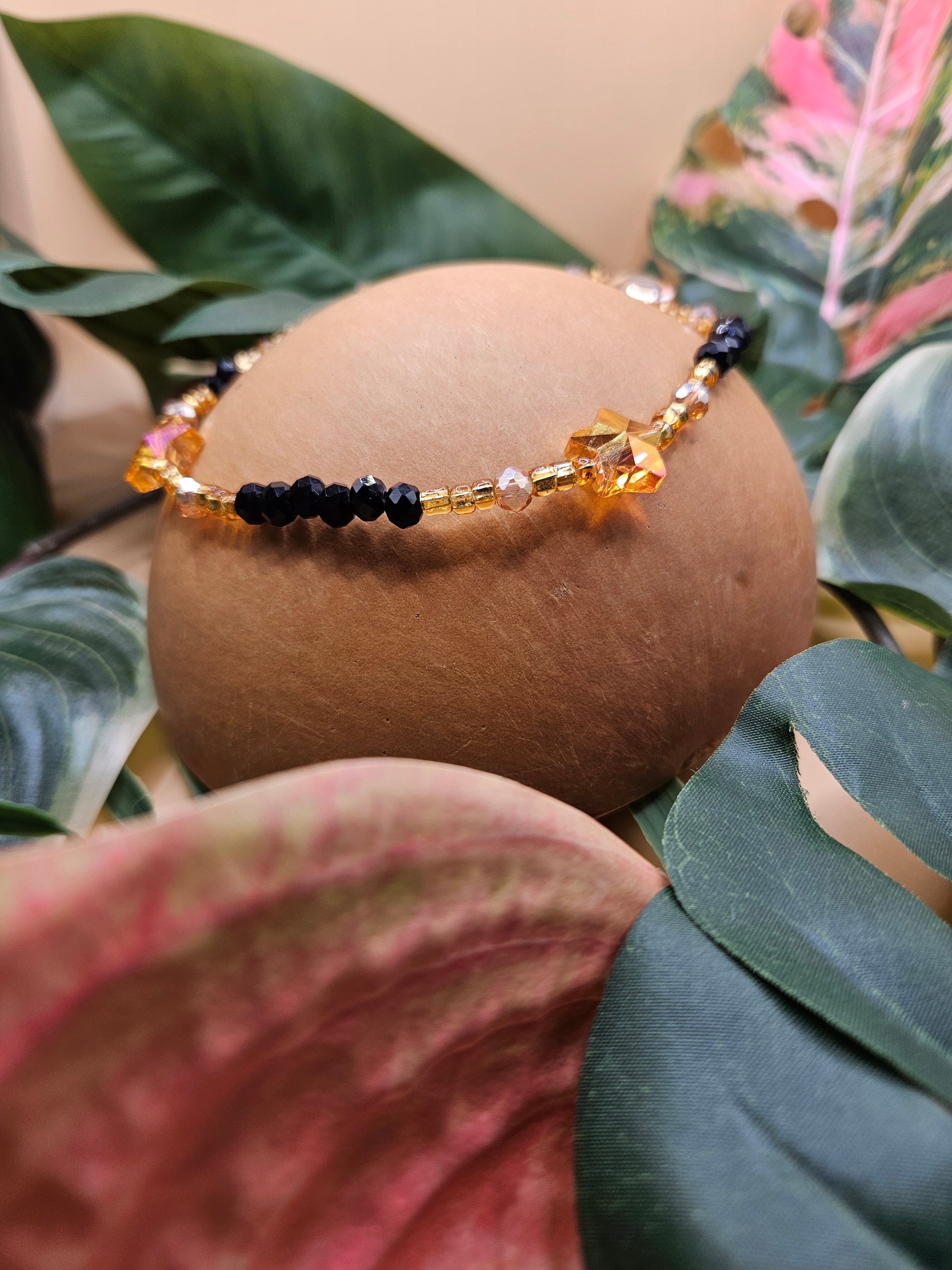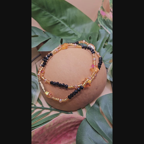 Grace your ankle with our authentic West African anklet, handcrafted in Ghana with black and gold glass beads and shimmering crystal gems. Bold, elegant, and full of soul.