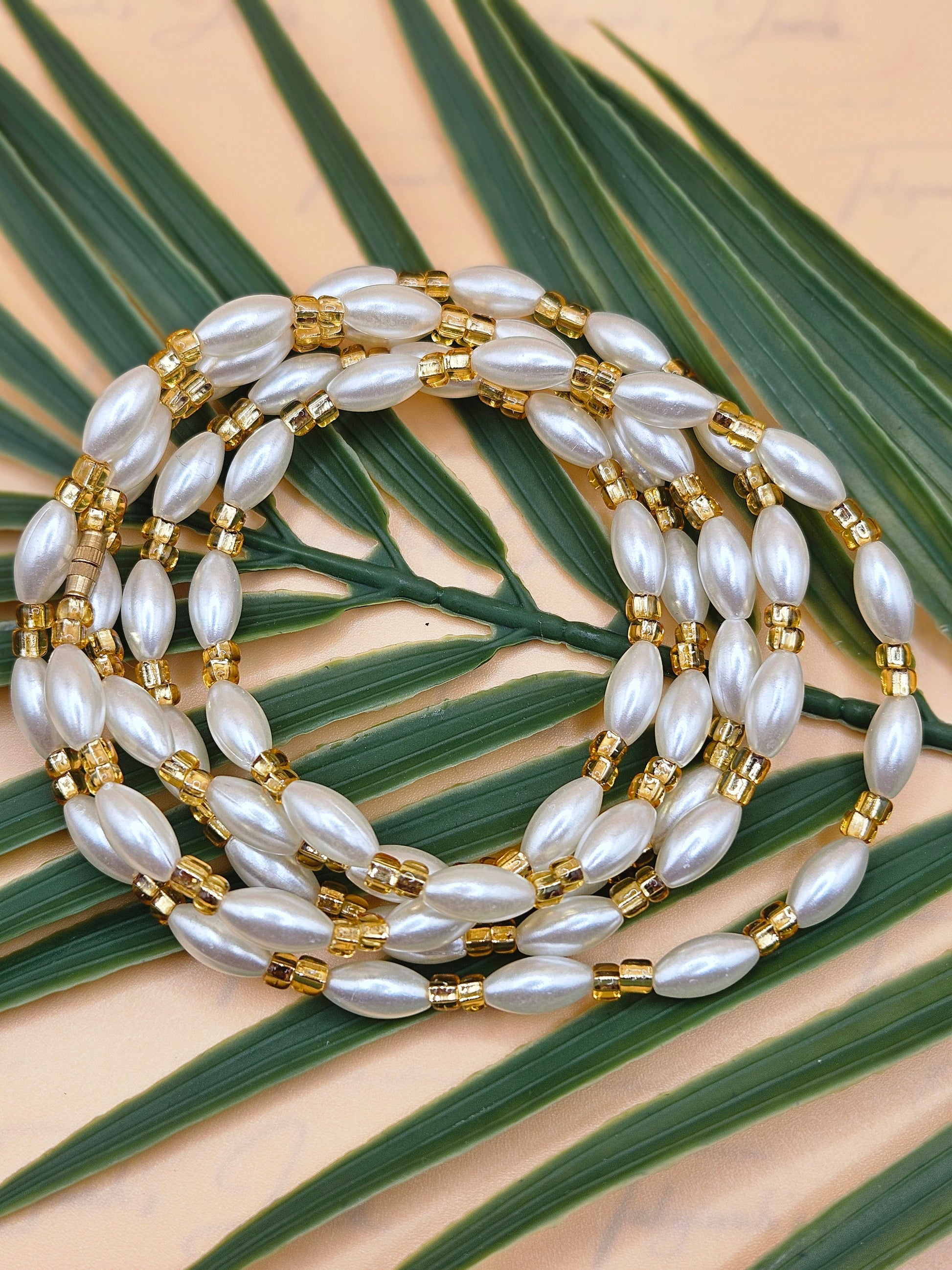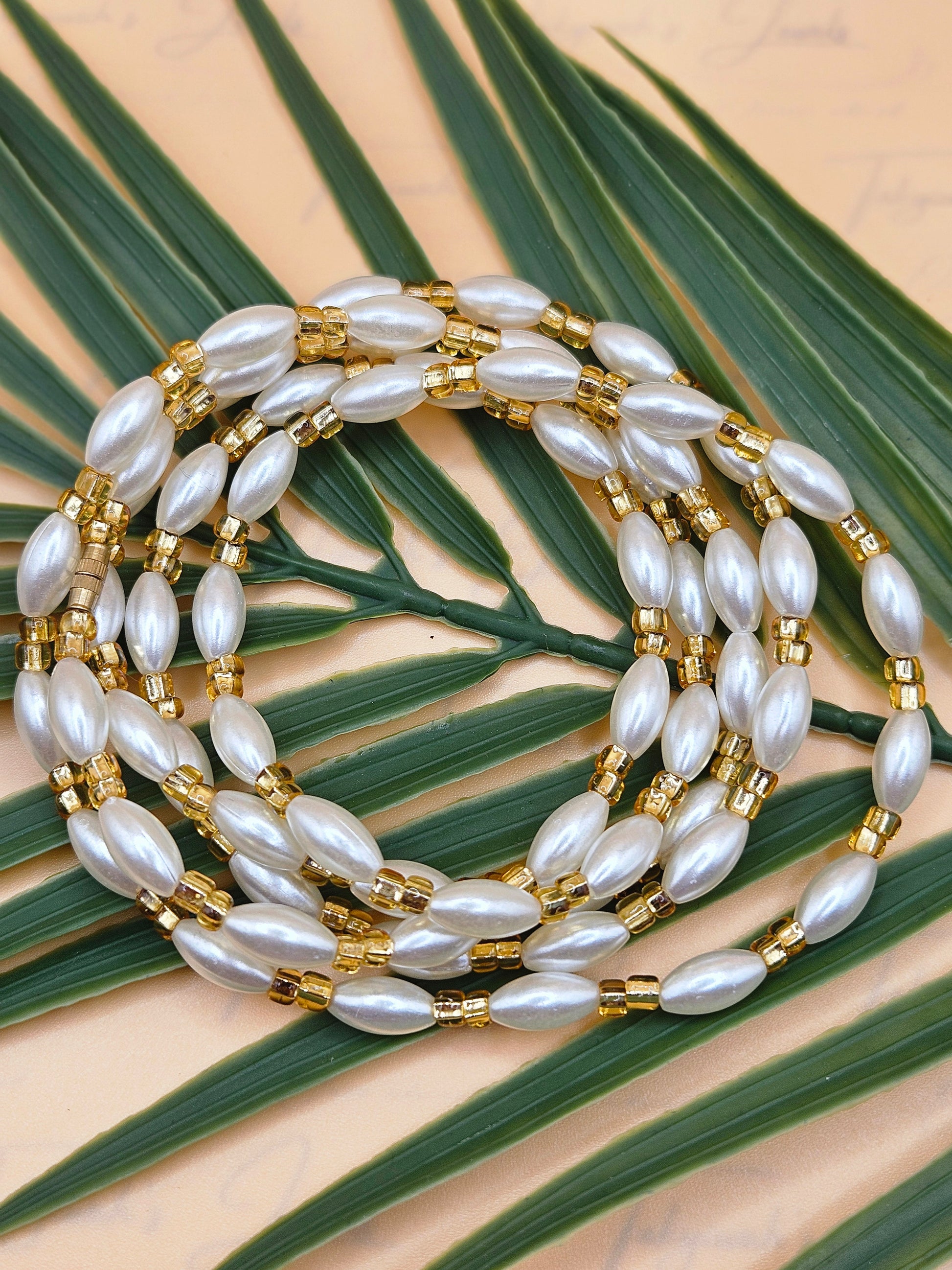 Feel beautiful and connected in this gold and pearl waist bead. With a clasp for easy wear, it adds a touch of elegance while honoring tradition.